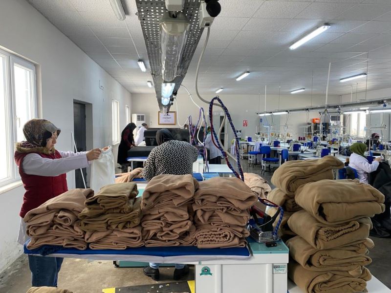 Hazır Giyim Uygulamaları Merkezinde “Dikiş Makinesi Operatörü” eğitimlerine devam eden 40 kadın kursiyerin diktiği Battaniye, Bere, Eldiven, Hırka gibi tamamı Polar kumaştan üretilen birçok kışlık kıyafet depremden etkilenen bölgelere gönderiliyor. Kursiyerlere dışardan gönüllü kadınlar da destek veriyor.