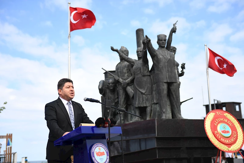 Törende bir konuşma gerçekleştiren Altınordu Belediye Başkanı Aşkın Tören, “Bizleri, bir arada tutan, bağımsızlık şuuruyla kutlu vatan emanetini bize kadar ulaştıran tüm kahramanlarımızı, şehitlerimizi, gazilerimizi rahmet ve minnetle anıyorum” dedi.